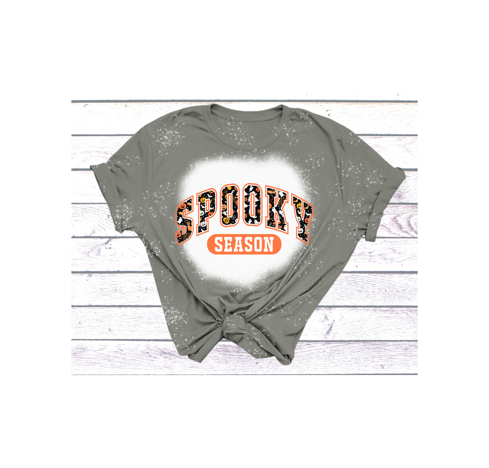 Experience the ultimate comfort and style with our Spooky Season T-shirt, made with soft Gildan material. The unique custom orange and gray bleached designs add a touch of individuality. Perfect for any fashion-forward individual. Also available in plain white. Each shirt is custom bleached, colors may vary.